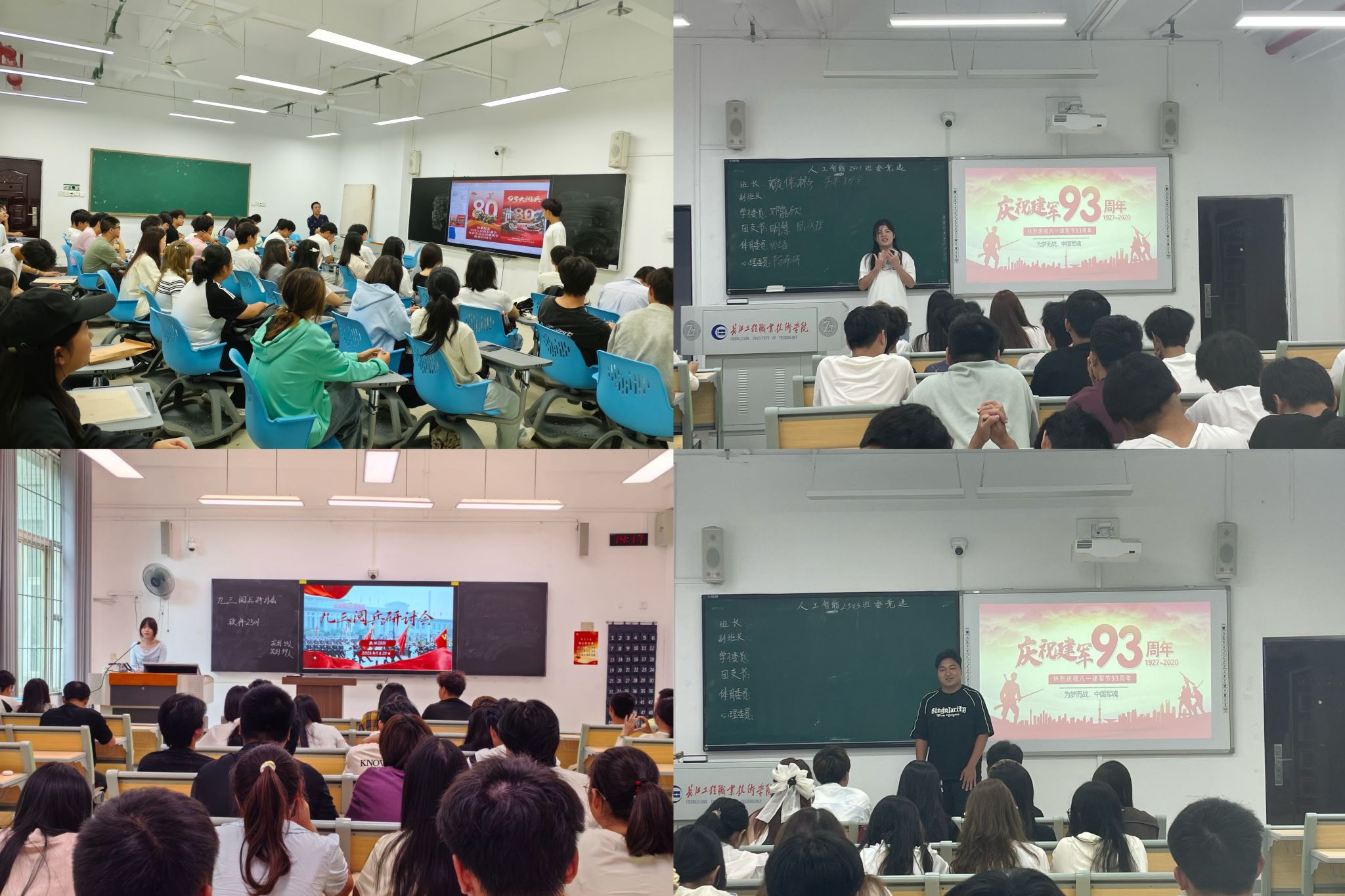 新生集体观看阅兵精彩剪辑,通过九三阅兵研讨会分享观看感受,探讨国家实力与民族精神,进一步增强民族自豪感与爱国担当。