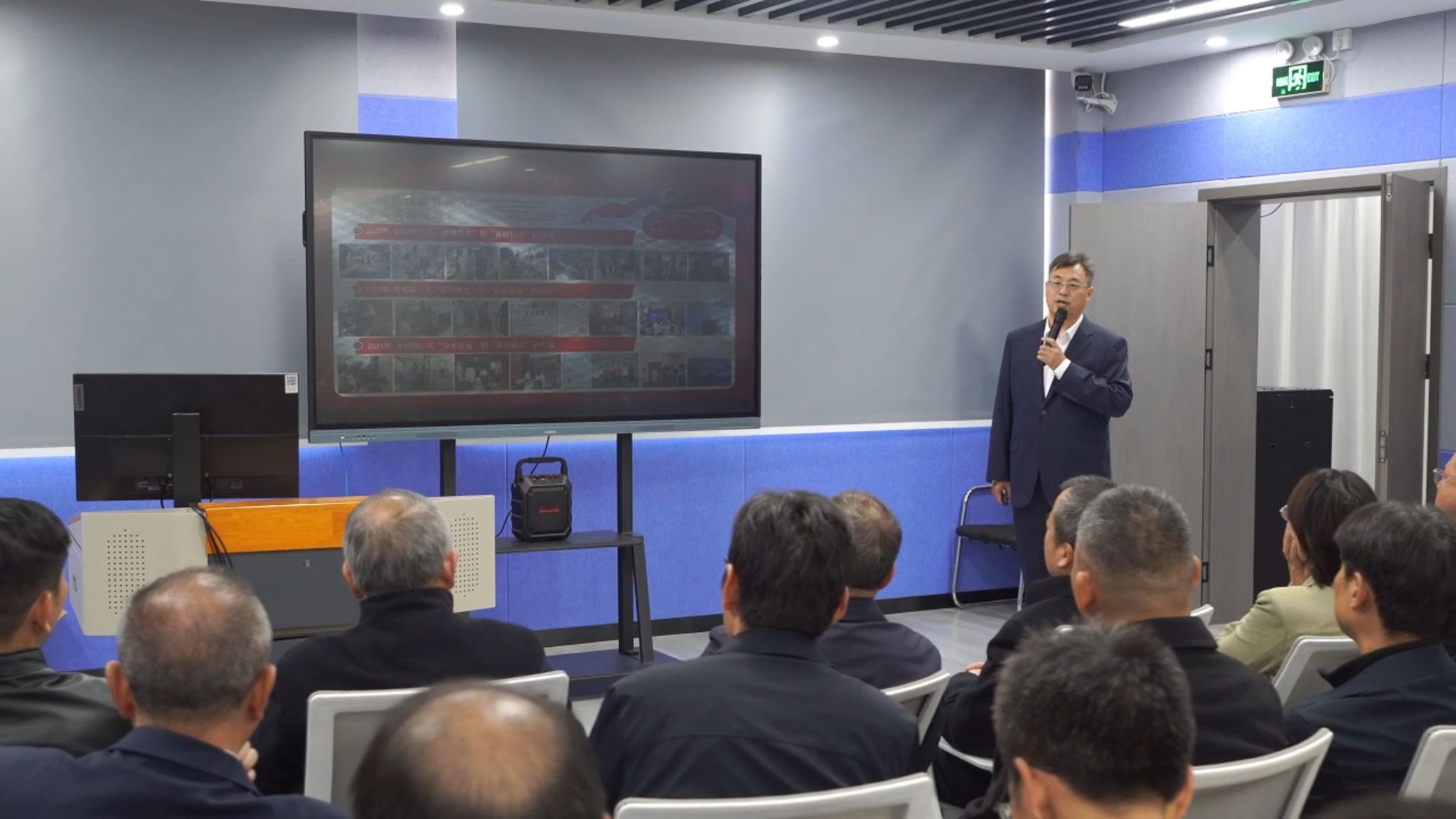 在长江楼609实训室(人工智能工程技术中心),何毅平介绍了大数据技术专业校企合作情况及当前承担的社会服务项目。该实训室还是校企合作工作室,采用“人才共育、过程共管、成果共享、责任共担”的合作机制,构建“产、教、研、创、服”特色合作办学模式,共同推进校企协同教学、协同育人、协同就业和协同创新。