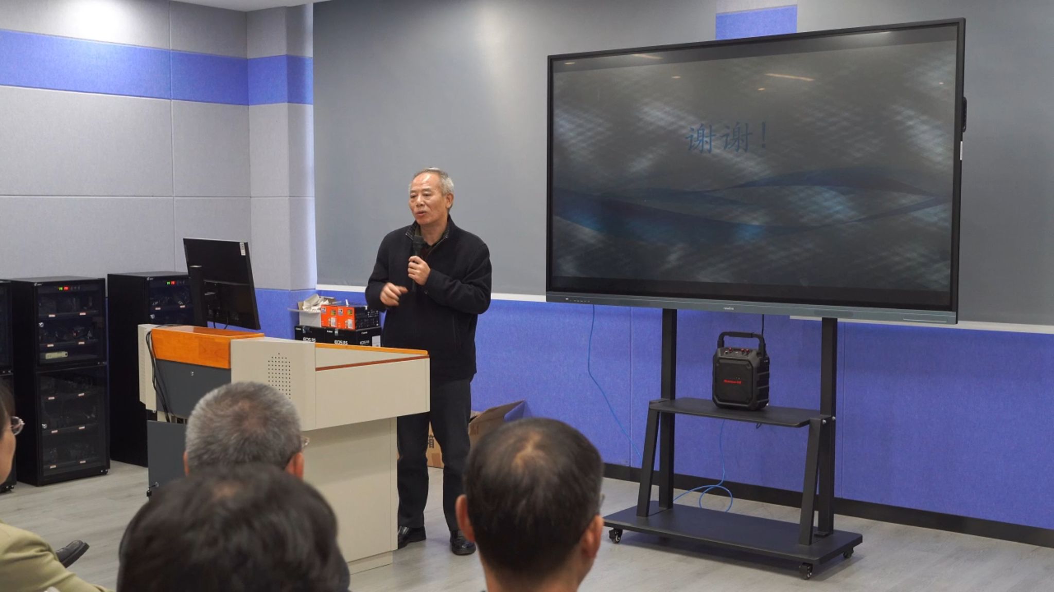 在长江楼413实训室,企业老师正在进行现场教学,朱金波老师介绍了现场工程师项目的开展情况。
