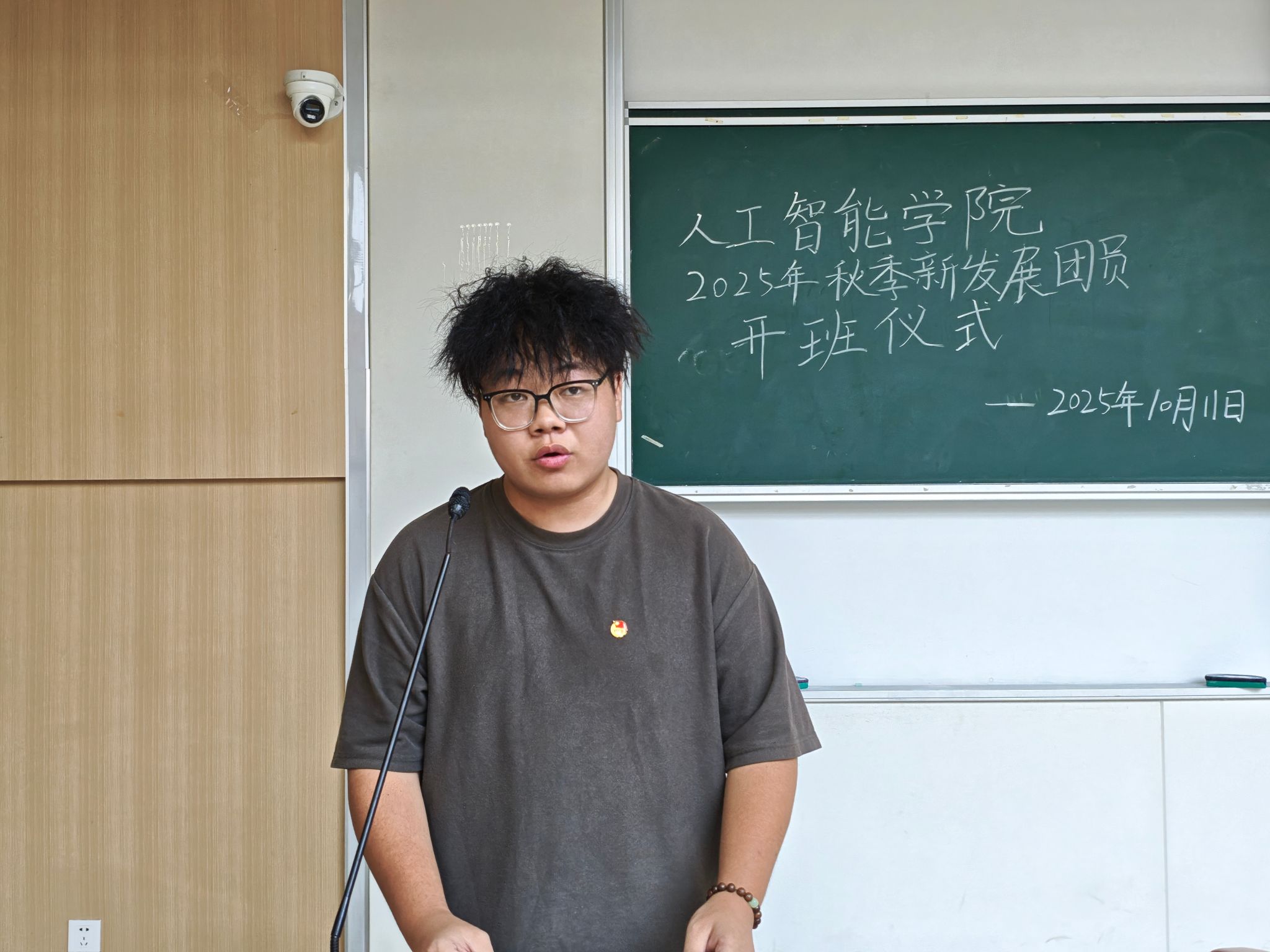 持续夯实团员队伍基础,全面提升新发展团员的综合素质,人工智能学院于10月11日在陆水楼110教室举行2025年秋季新发展团员培训班开班仪式。院团委副书记姜博达、团委全体成员以及2025年秋季新发展团员共同参加。