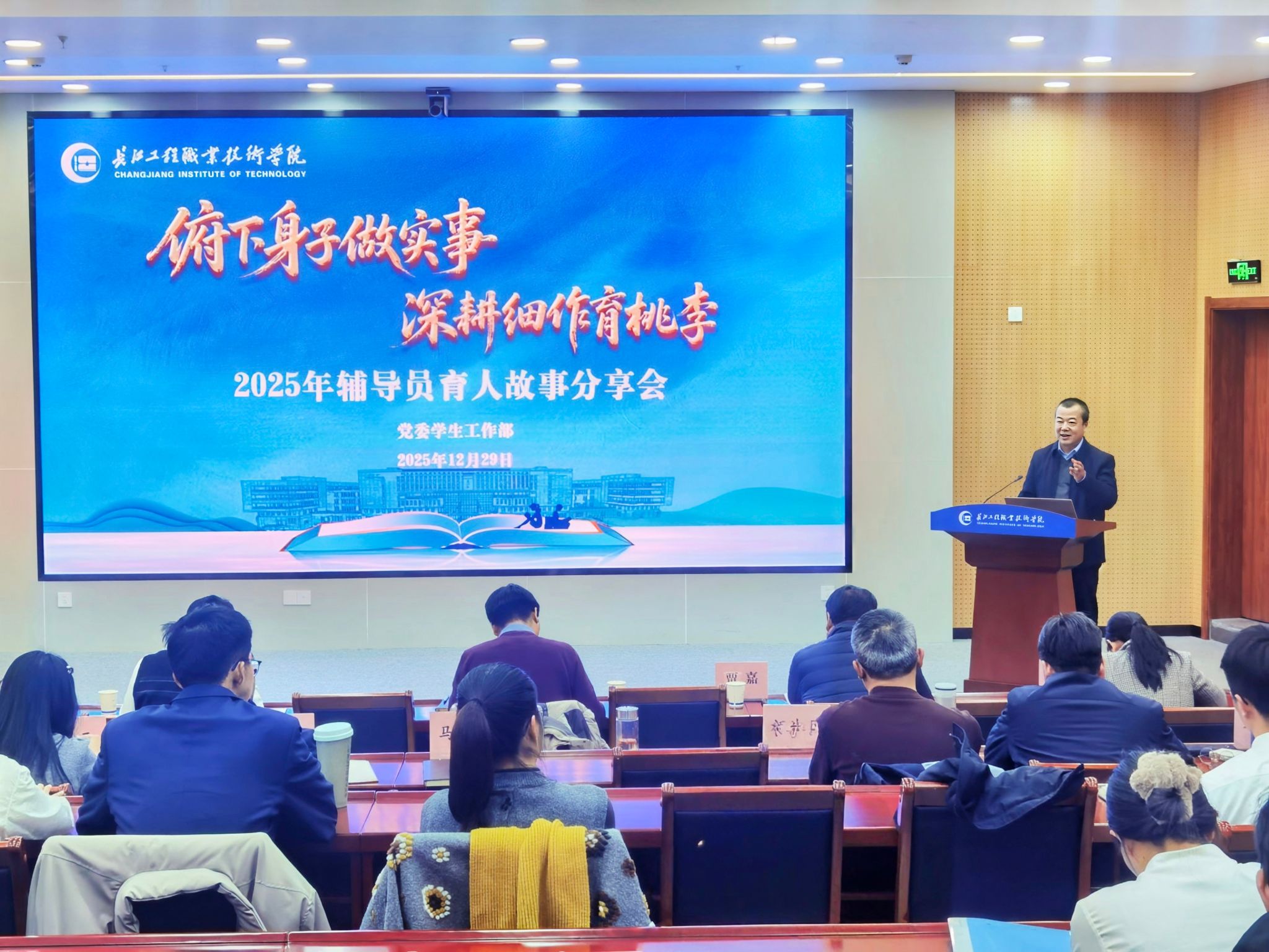 12月29日,我校2025年辅导员育人故事分享会决赛在校园隆重举行。学校党委书记马大奎,党委委员、副校长卢俊出席活动并为获奖选手颁奖,党委宣传部、学生工作部、保卫部、校团委主要负责人、各二级学院党总支书记、副书记及全体辅导员到场观摩。本次活动邀请武汉工程大学、武汉船舶职业技术学院、武汉交通职业学院相关领导专家与校内职能部门负责人组成评委团,12名从二级学院选拔中脱颖而出的辅导员同台竞技,分享育人路上的温暖与坚守。