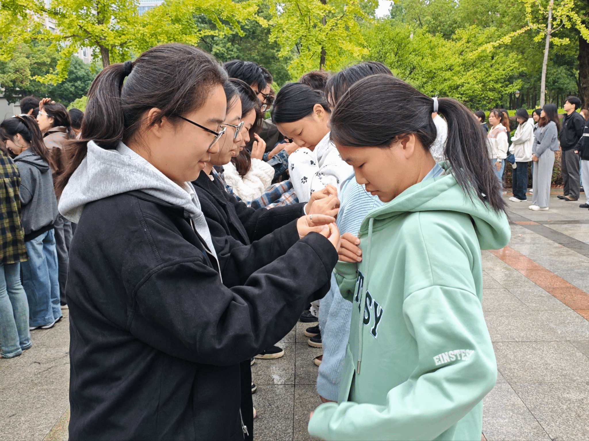 早晨七时整,伴随着雄壮的《义勇军进行曲》,鲜艳的五星红旗冉冉升起,全体师生肃立行注目礼,心中激荡着炽热的爱国情怀。升旗仪式结束后,现场举行了2025级新团员佩戴团徽仪式。学生代表夏天发言,号召同学们锤炼过硬本领、勇担时代使命,以实际行动诠释新时代青年的责任与担当。