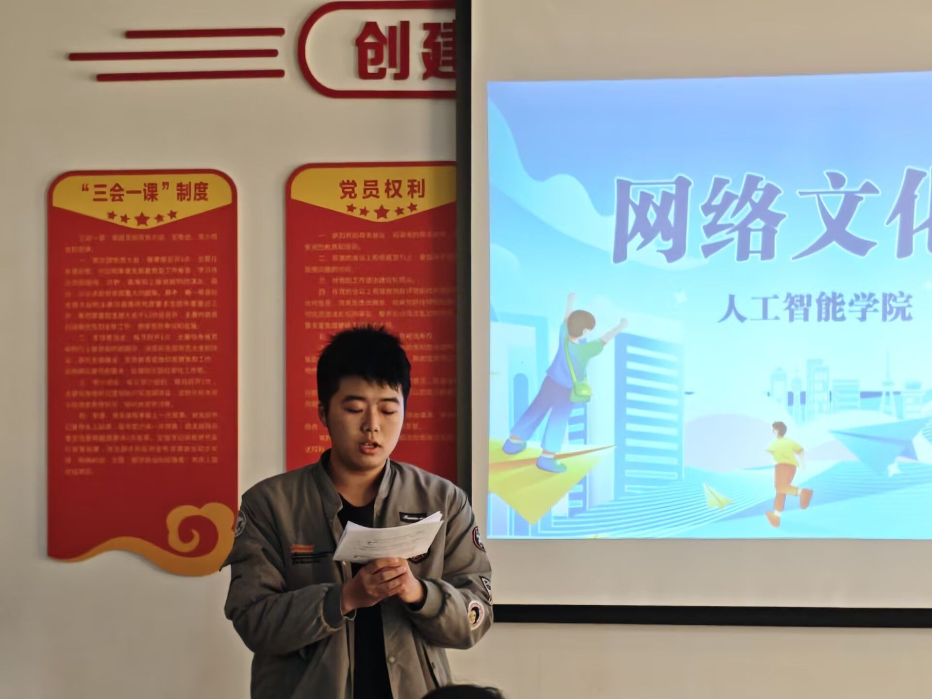为深入推进校园网络文明建设,引导广大青年学子提升网络素养、传播青春正能量,11月25日,人工智能学院团委举办以“凝聚网络正能量,传播青春好声音”为主题的网络文化节院赛。学工秘书陈雄、院团委书记石君兰、副书记姜博达及各辅导员出席活动。
