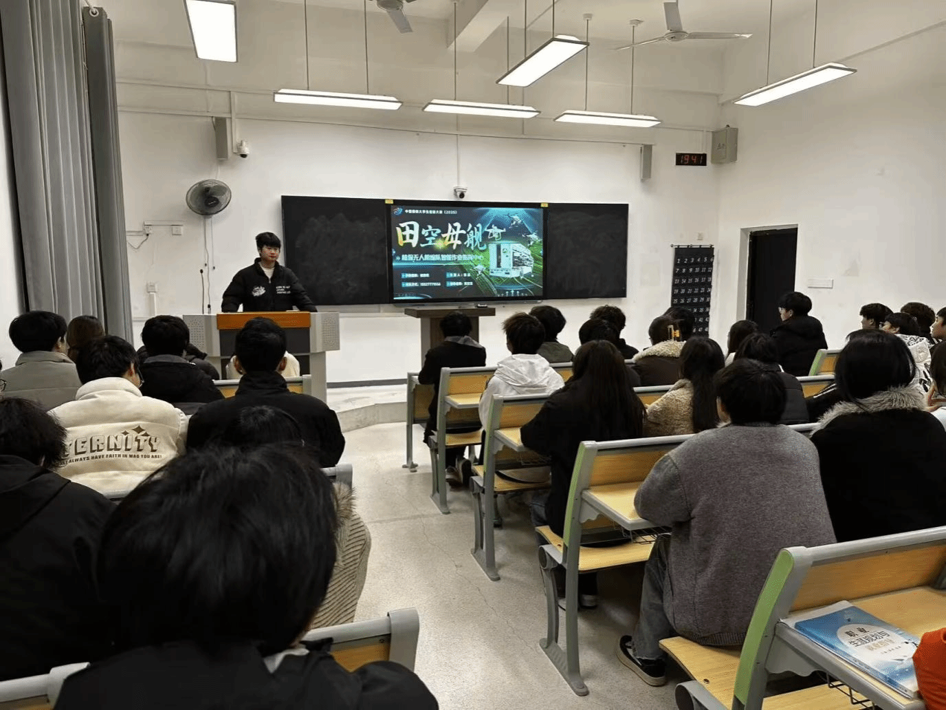 谈及备赛历程,张源坦言荣誉离不开反复打磨,他分享了项目从校级到省级的优化经历,鼓励学弟学妹“敢于试错、善于总结”,并善用学校导师与双创平台资源。互动环节,针对“学业与竞赛平衡”“零基础项目启动”等问题,他给出“制定优先级时间表”“从微创新积累”等切实建议,获现场阵阵掌声。